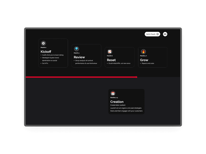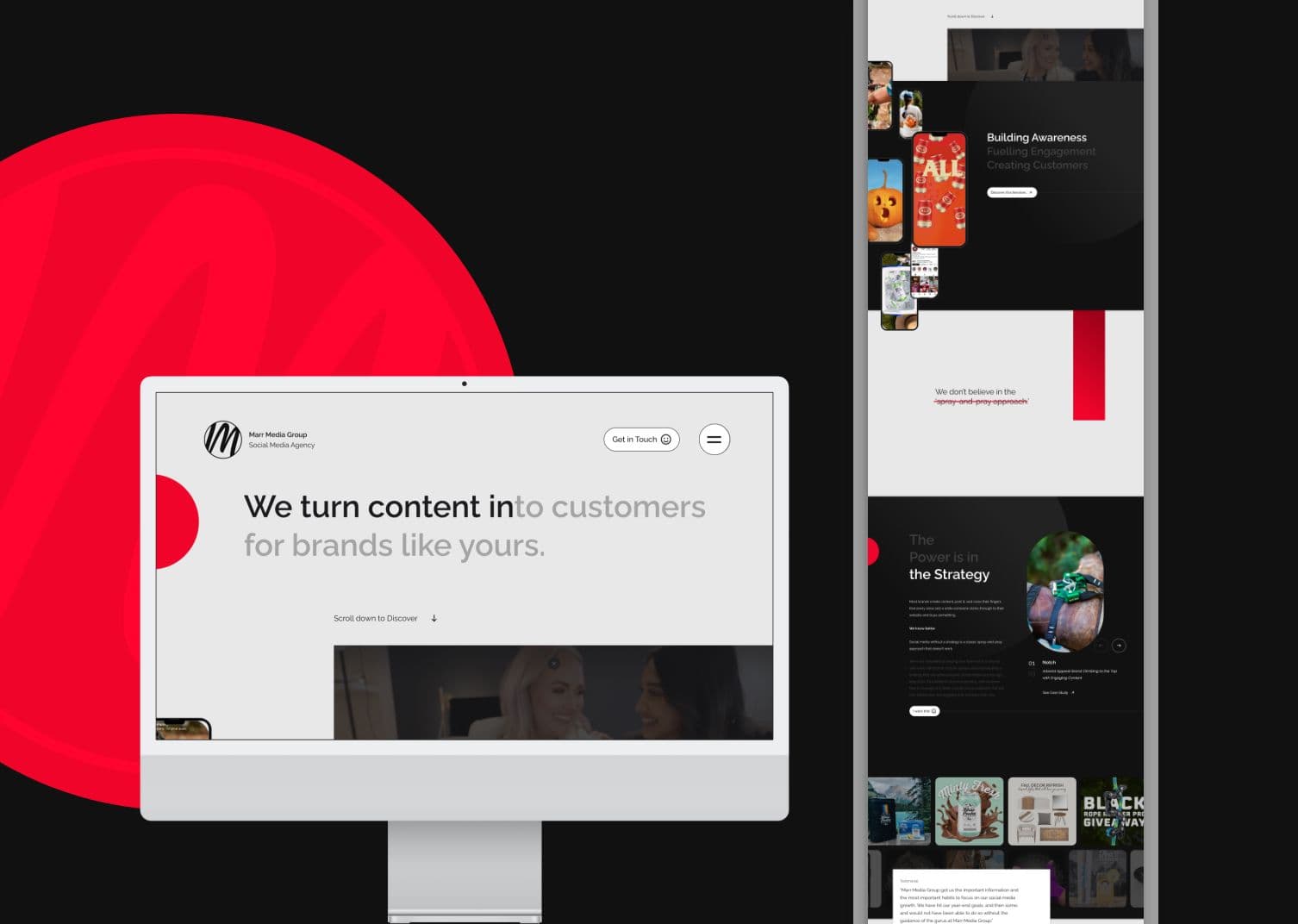 We focused on striking a balance between bold and refined—building a site that speaks to Marr Media’s confidence, showcases their results and reflects their fun, fearless approach to social marketing. The result? A brand experience that finally feels like Marr Media.